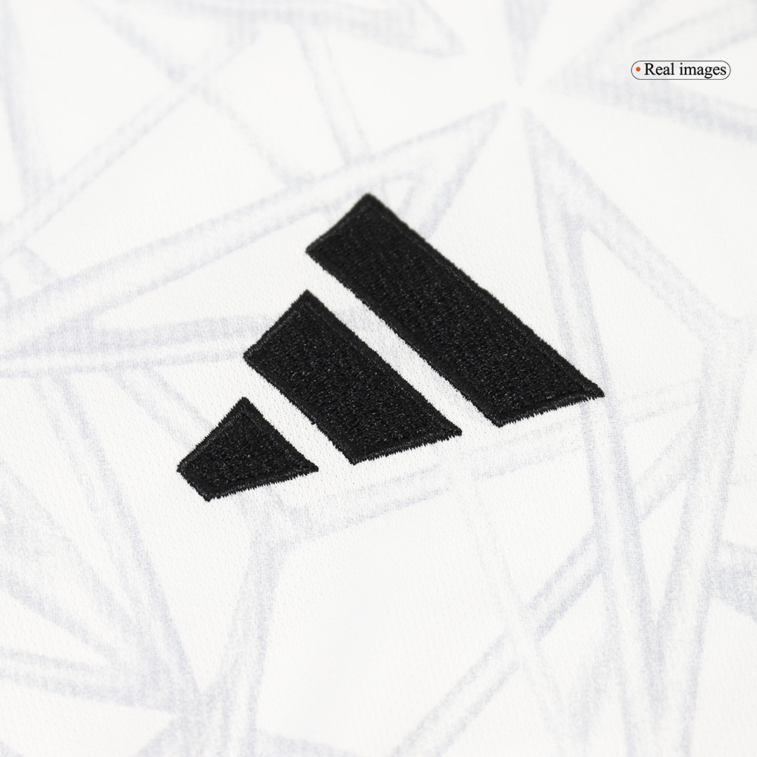 • Adidas Badge of Sport: The iconic Adidas logo is positioned opposite the club crest, also likely embroidered on the Fan Version, signifying the quality and partnership between the club and the sportswear giant.