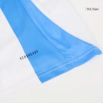 At its heart are the iconic sky blue and white stripes, instantly recognizable and steeped in over a century of footballing glory. For the 2024 iteration, these stripes are rendered with a clean, classic look, evoking a sense of tradition and continuity. Subtle details elevate the design, such as the gold accents often incorporated around the crest and logos, a nod to their status as reigning world champions.