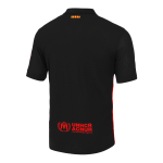 • Crest: The iconic FC Barcelona crest is proudly displayed, typically in a contrasting color or a monochromatic application that stands out against the black background. On this Replica version, the crest is designed to replicate the look of the official kits.