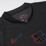 The 2024/25 FC Barcelona Away Kit marks a striking return to a classic and powerful aesthetic: black. This choice is more than just a color; it represents elegance, strength, and a readiness to face any challenge away from the Camp Nou (or Estadi Olímpic Lluís Companys). The design is rooted in the club’s identity while offering a fresh, modern interpretation.