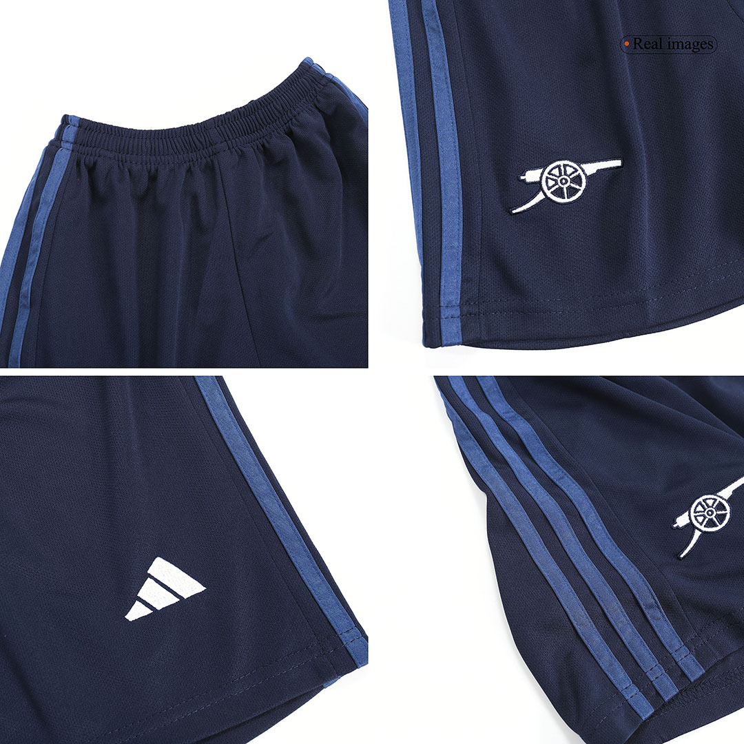 This product includes both the official Kids Arsenal 2023/24 Third Away Jersey and the matching Shorts. This provides a complete, coordinated look, perfect for young fans who want the full kit experience. The shorts also feature AEROREADY technology and the club and brand logos, ensuring comfort and authenticity from head to toe (or at least waist to knee!).