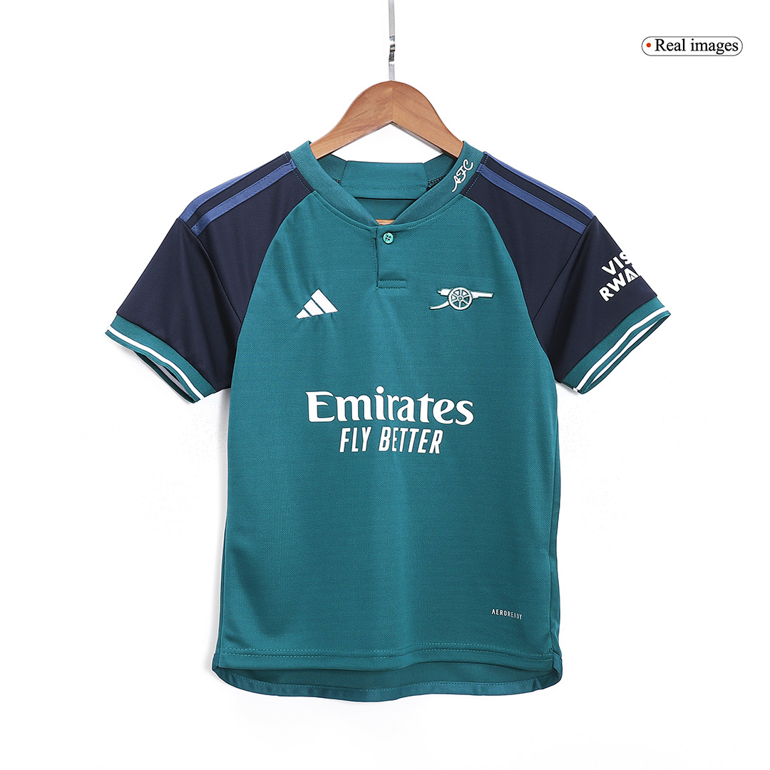 Get your young fan ready to support the Gunners in style with the official Kids Arsenal 2023/24 Third Away Soccer Kit. Order yours today and let them wear their passion!