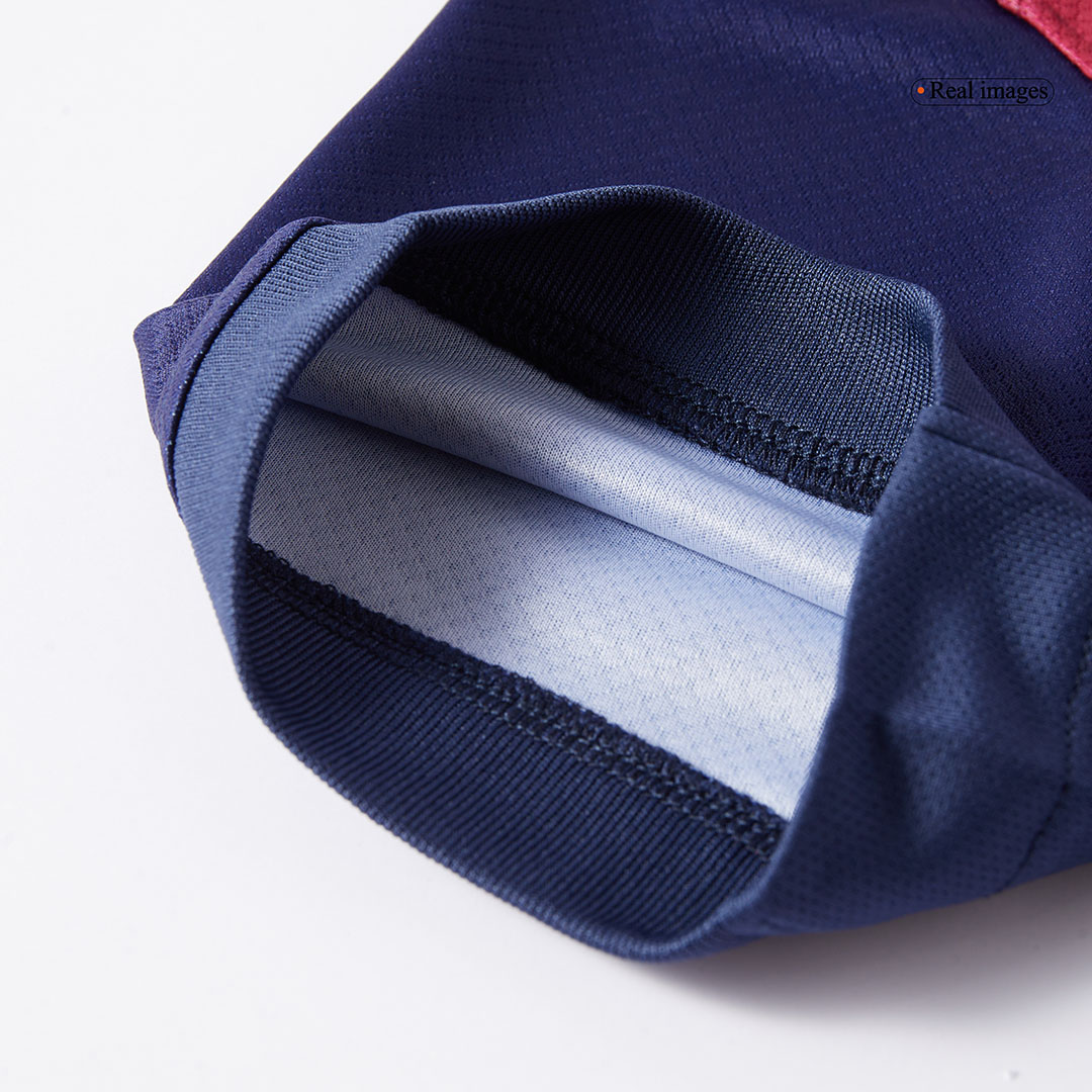 - Crest Detail: The official FC Barcelona crest is proudly displayed, typically as a high-quality embroidered or heat-pressed badge on the chest, symbolizing the club’s heritage and achievements.