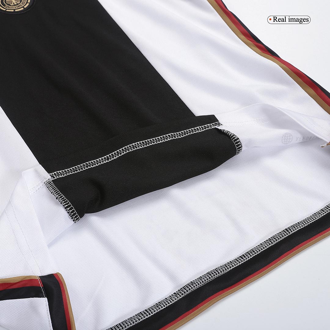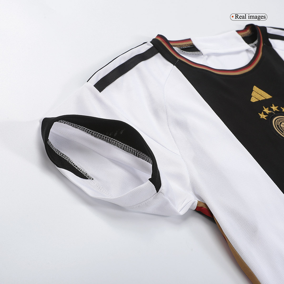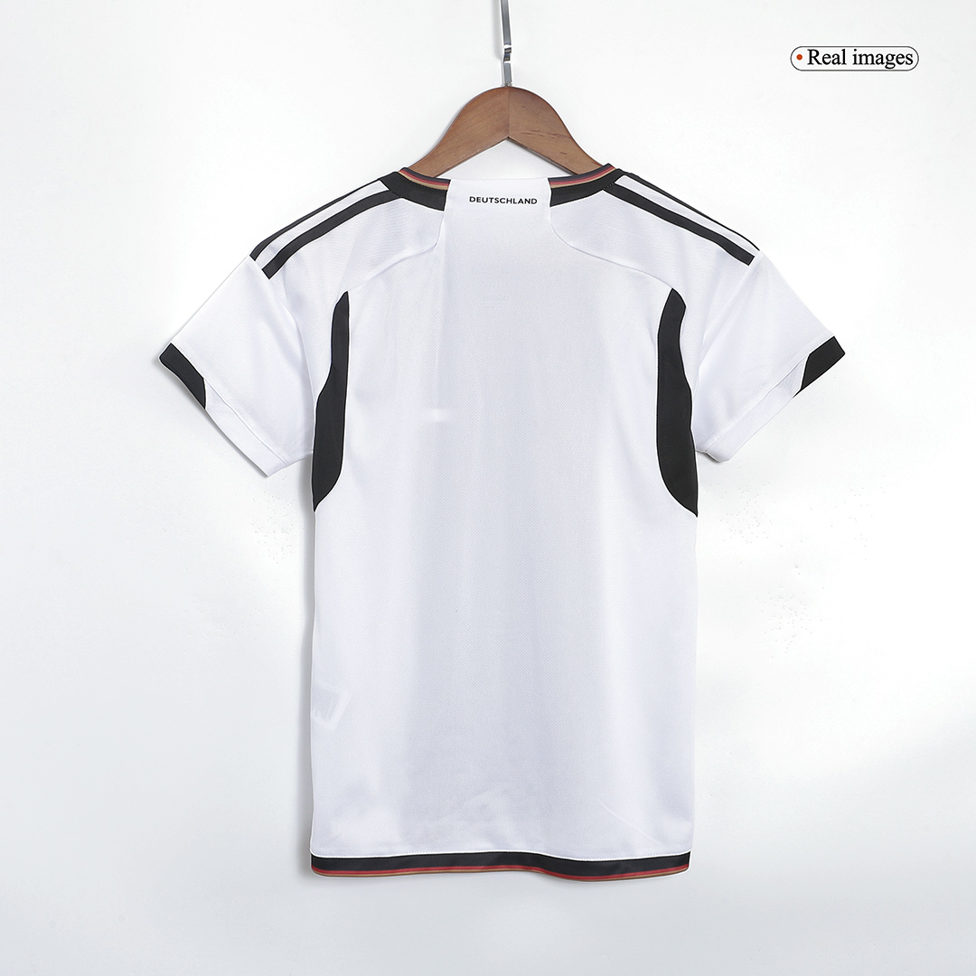 Let your child step into the legacy of German football. Experience the pride, passion, and performance of the 2022 World Cup—order the Kids Germany Home Jersey Kit today!