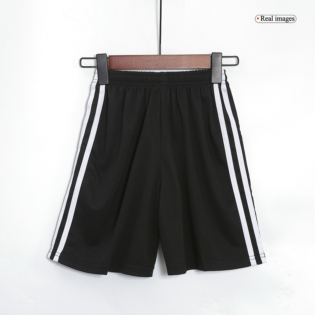 The Germany 2022 World Cup home kit for kids is a masterful blend of tradition and innovation. The iconic white base, a hallmark of Die Mannschaft, is boldly accented by a striking black central stripe—a nod to the nation’s footballing legacy and a symbol of unity and strength. Gold detailing, including the DFB crest and adidas logo, adds a touch of prestige, celebrating Germany’s storied World Cup history. Every element, from the ribbed cuffs to the subtle mesh inserts, is crafted to evoke national pride and inspire the next generation of fans.