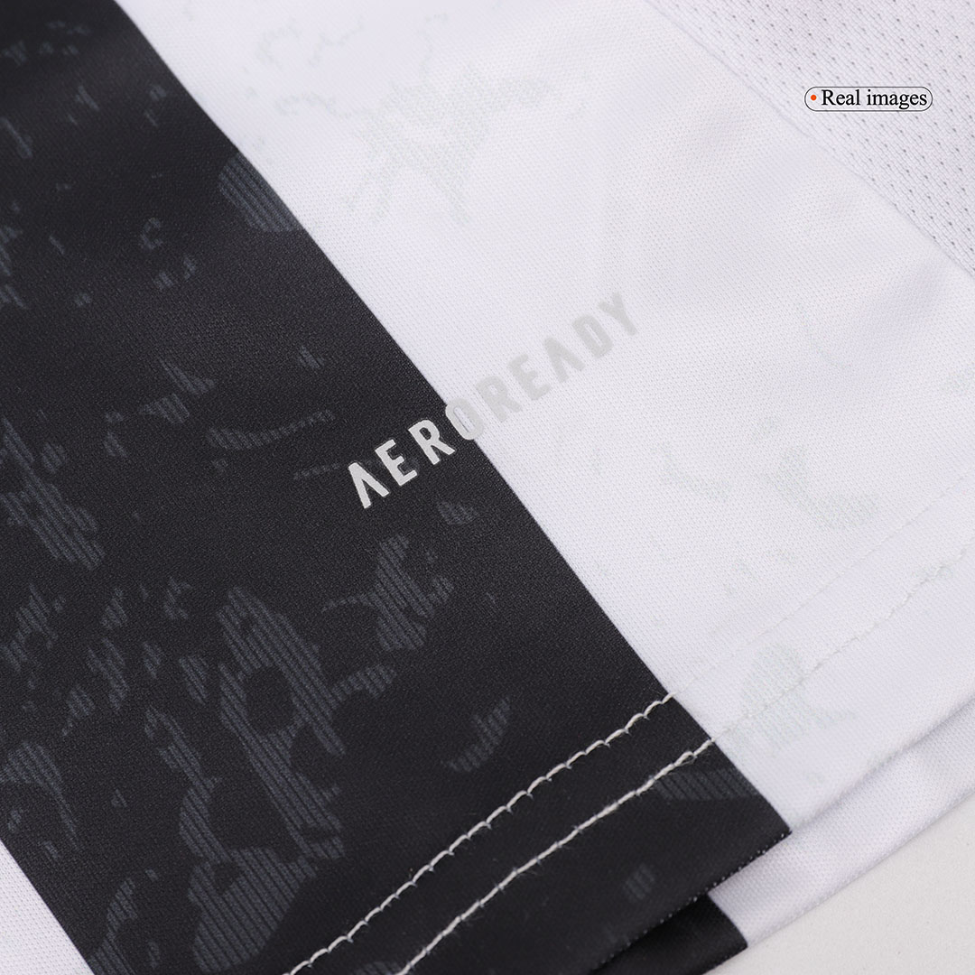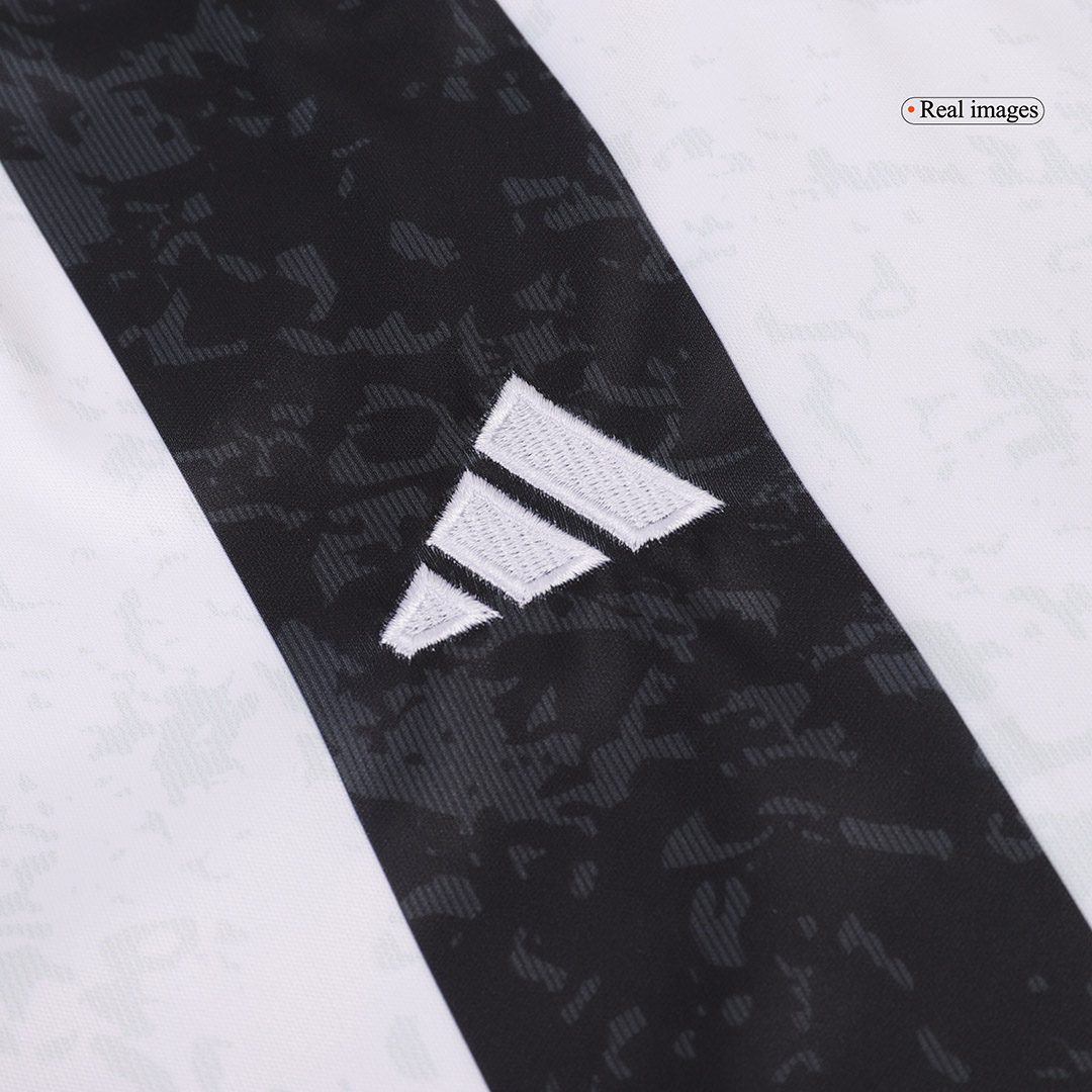 The Juventus home kit is a timeless symbol, and the 2024/25 edition continues this proud tradition while introducing subtle, modern updates. The design stays true to the club’s identity with bold black and white vertical stripes. For the 24/25 season, the stripes feature a unique brushstroke or textured effect, adding a dynamic visual element that reflects the club’s forward momentum while honoring its artistic heritage.