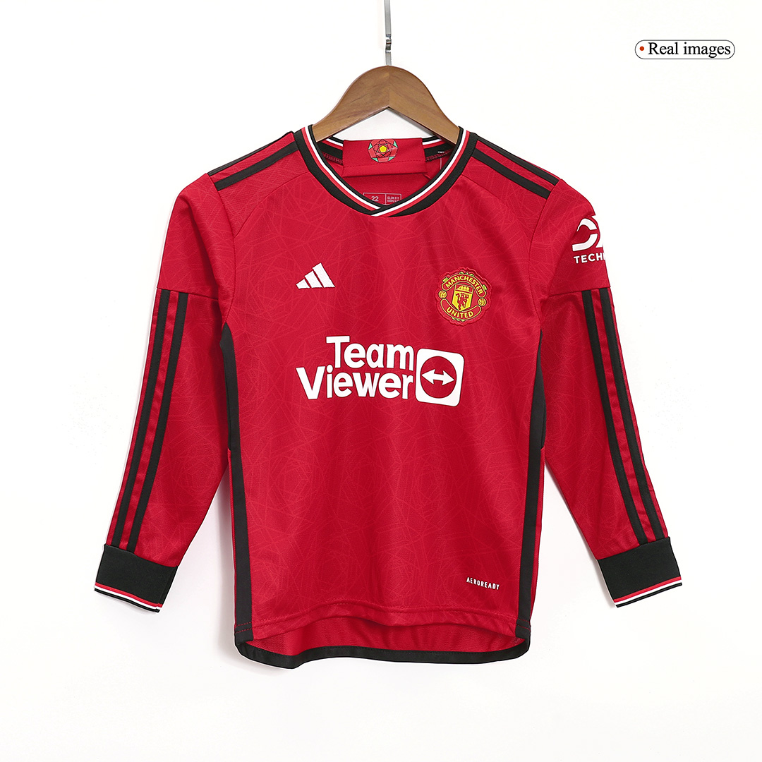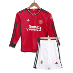 Kids Manchester United 23/24 Home Long Sleeve Replica Jersey Kit (Jersey & Shorts)