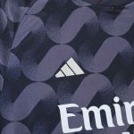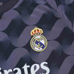 The Real Madrid 2023/24 Away Kit embodies the club’s rich history and commitment to elegance, even when playing away from the Santiago Bernabéu. This season’s design takes inspiration from the club’s heritage, presenting a sophisticated look that resonates with both classic and modern football aesthetics. The choice of a deep black base serves as a canvas for subtle yet impactful details, reflecting the team’s quiet confidence and formidable presence on any pitch. It’s a kit designed not just for performance, but to make a statement of class and tradition.