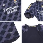 In summary, the Replica kit offers the authentic look and feel of the Real Madrid 2023/24 Away Kit with features optimized for fan comfort, durability, and value – making it the perfect choice for young supporters.