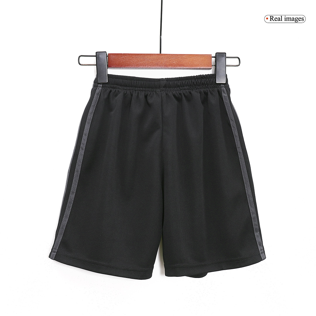 The accompanying shorts mirror the design language of the jersey, featuring the same base color and potentially incorporating elements of the graphic pattern or accent colors. The club crest and Adidas logo are also present on the shorts, ensuring a complete, cohesive look. This full kit provides everything a young fan needs to feel like part of the squad.