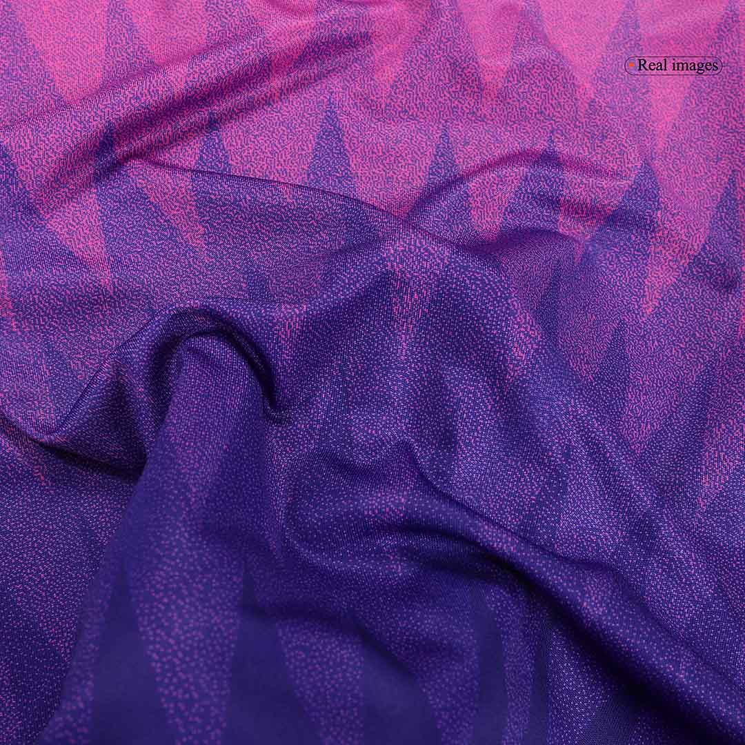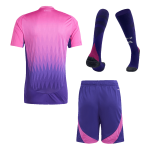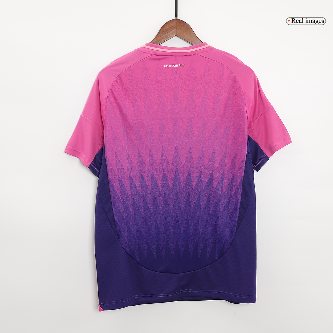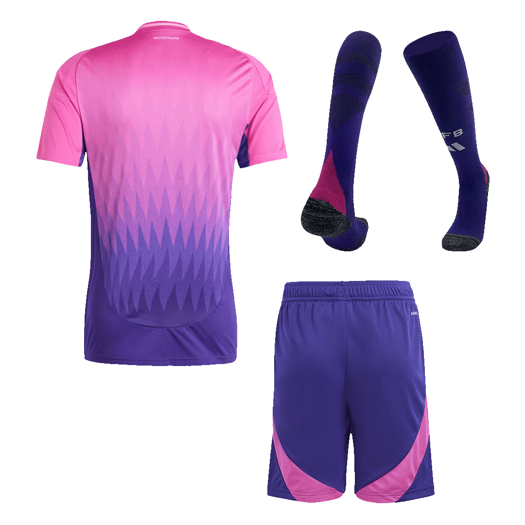 The Germany Euro 2024 Away Kit breaks from tradition with a bold, gradient design that has captured global attention. Inspired by the vibrant colors of the Black Forest and symbolizing the diversity and inclusivity of modern Germany, this kit is a visual masterpiece. The transition from dark pink/purple at the top to a deep blue at the hem creates a dynamic, eye-catching effect.