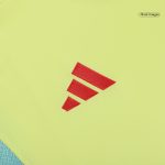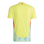 The Spain EURO 2024 Away jersey from Adidas is a bold and vibrant expression of the nation’s spirit, drawing inspiration from the rich tapestry of Spanish nature and culture. Moving away from traditional colors, this kit features a striking bright yellow base adorned with a unique, wavy graphic pattern in shades of blue and red. This dynamic pattern is said to represent the ocean waves and the vibrant flora found across Spain’s diverse landscapes, symbolizing energy, movement, and the country’s natural beauty.