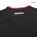 The Mexican national team crest is proudly displayed on the left chest. On this replica version, the crest is typically embroidered, offering a classic, tactile feel and a durable finish that stands the test of time and wear. The Adidas logo, also embroidered, sits on the right chest, balancing the design. The combination of the black base, national colors, cultural pattern, and classic embroidered details creates a jersey that is both modern for its time and deeply rooted in Mexican identity.