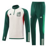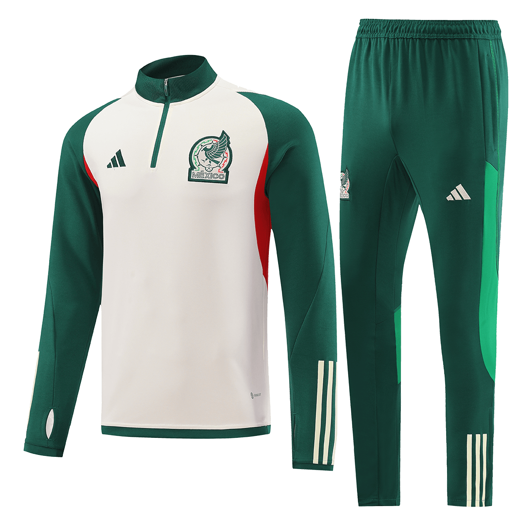 - The tracksuit primarily features the classic deep green associated with the Mexican national team, often complemented by white and red accents.