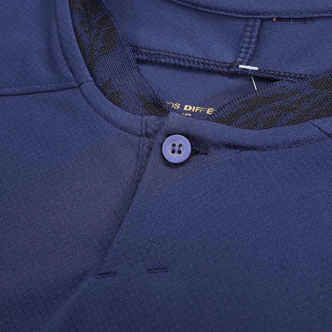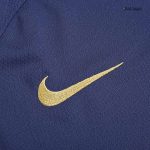 The Nike France 2022 Home Jersey captures the essence of French football heritage with a modern twist, worn by Les Bleus as they reached the final of the FIFA World Cup 2022 in Qatar. This design pays homage to classic French kits, featuring a deep, rich “Midnight Navy” base that evokes the nation’s traditional colors and proud history.