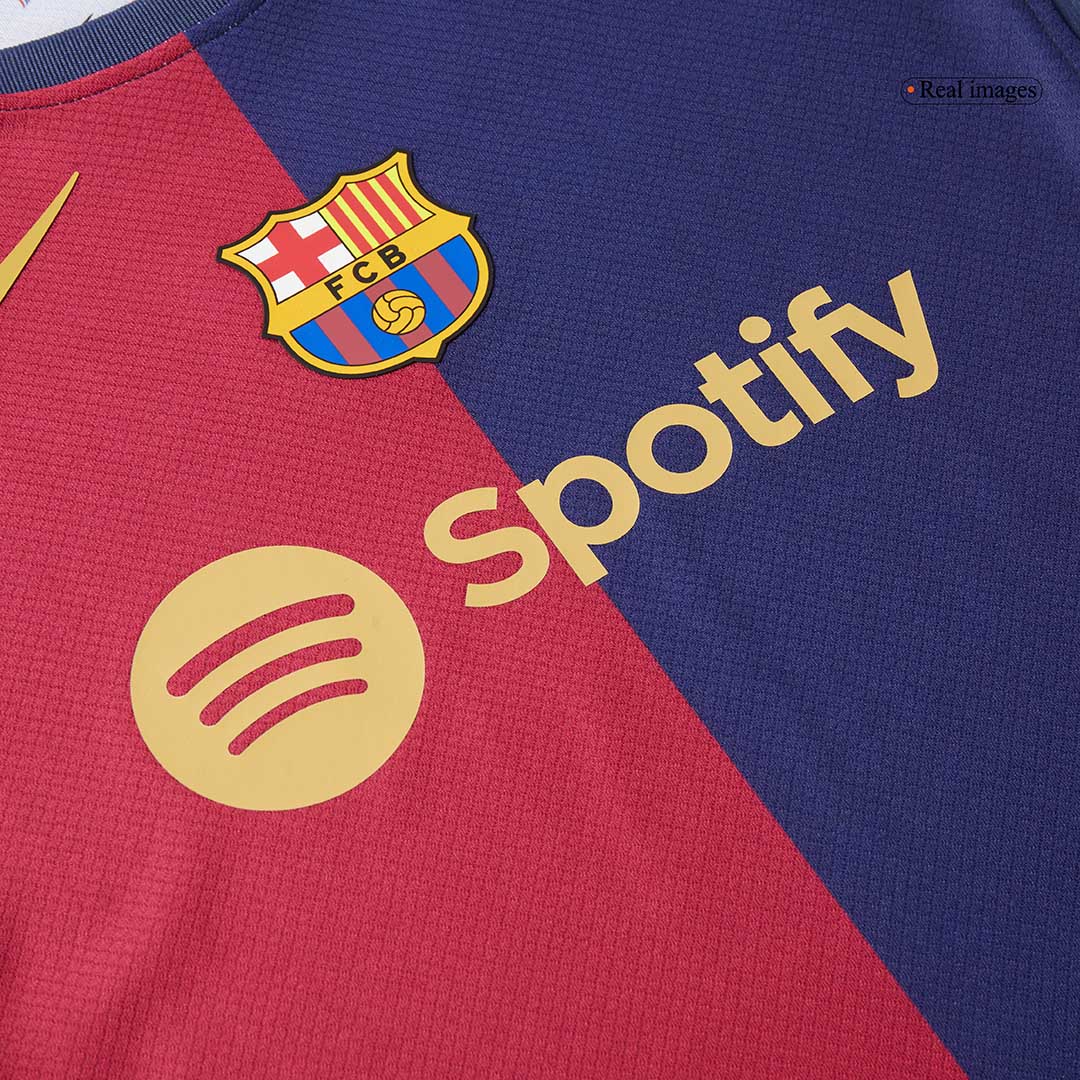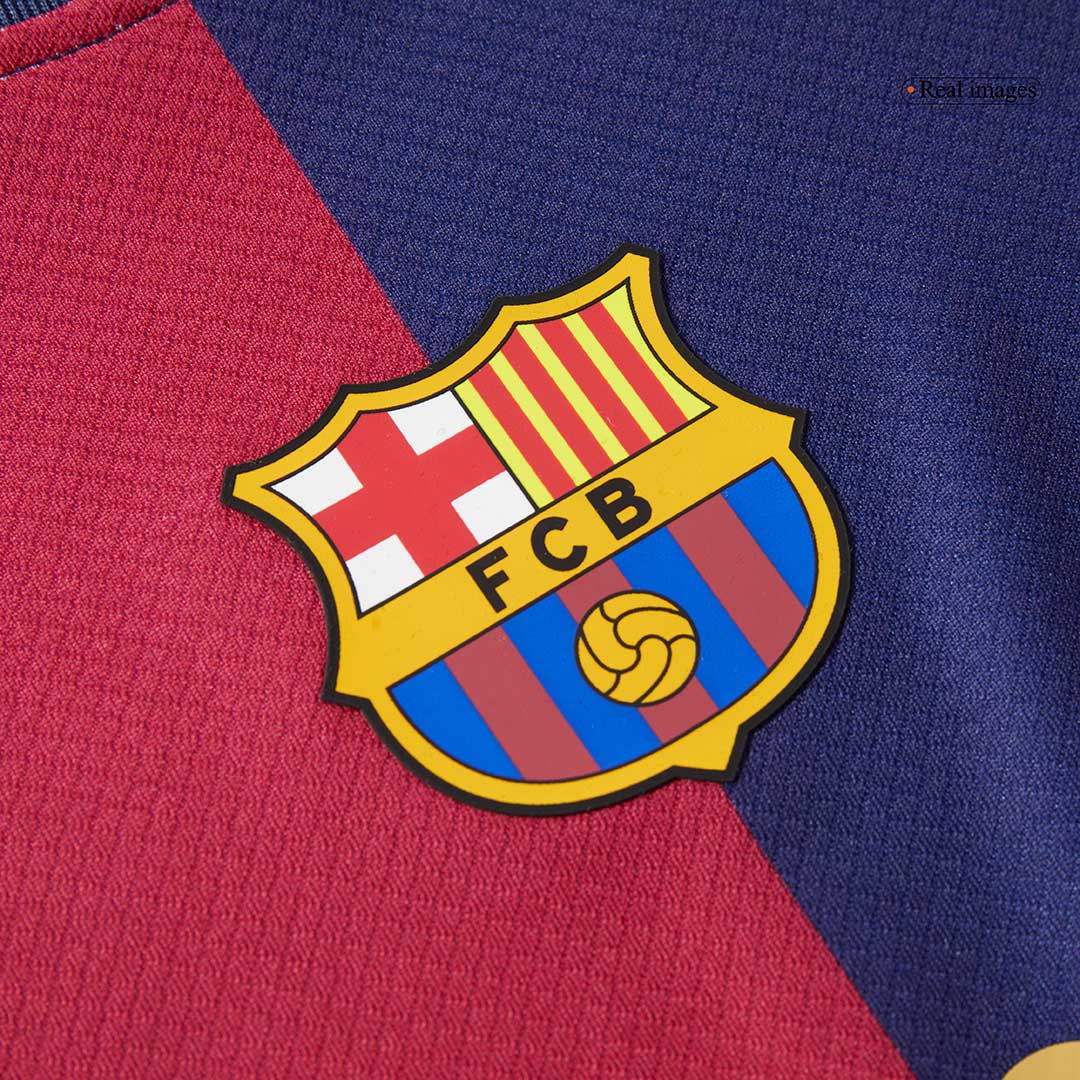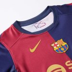 The 2024/25 Barcelona home kit pays homage to the club’s rich history while embracing a modern aesthetic. The design features the classic, unmistakable Blaugrana stripes, rendered with precision and vibrancy. The specific pattern and width of the stripes often carry subtle nods to significant eras or kits from the past, connecting the present squad to the legends who came before them. The club crest is proudly displayed over the heart, a symbol of identity and passion that resonates with fans worldwide. Details like the collar design and sleeve cuffs are carefully considered, adding touches of elegance and uniqueness to the season’s look. This kit isn’t just sportswear; it’s a wearable piece of FC Barcelona’s ongoing legacy, designed to inspire both players and supporters.
