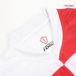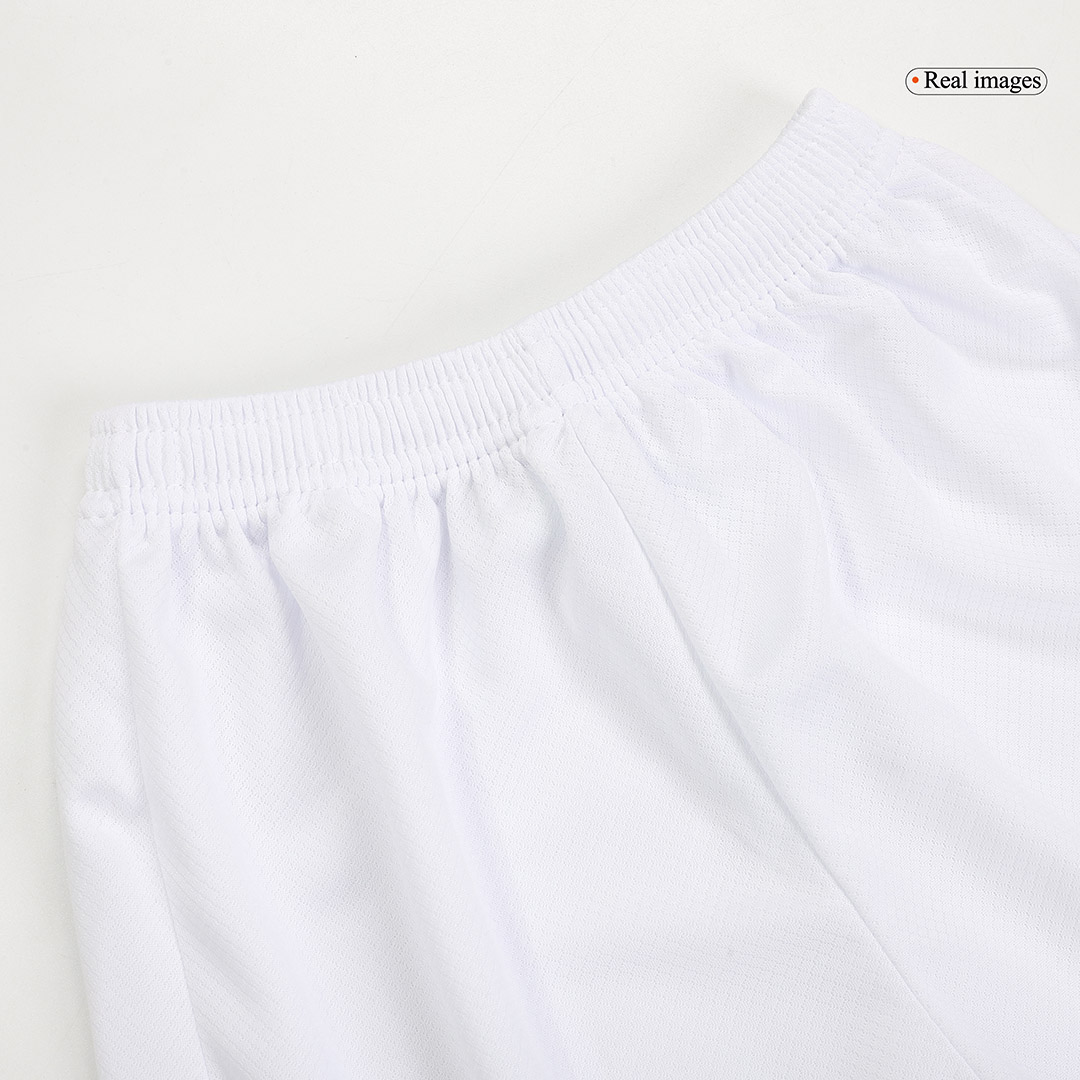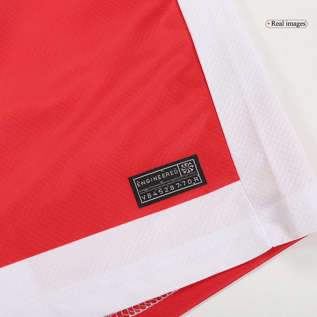 - **Shorts:** The accompanying shorts typically feature a complementary design, often solid white or red with check detailing, completing the classic home look.