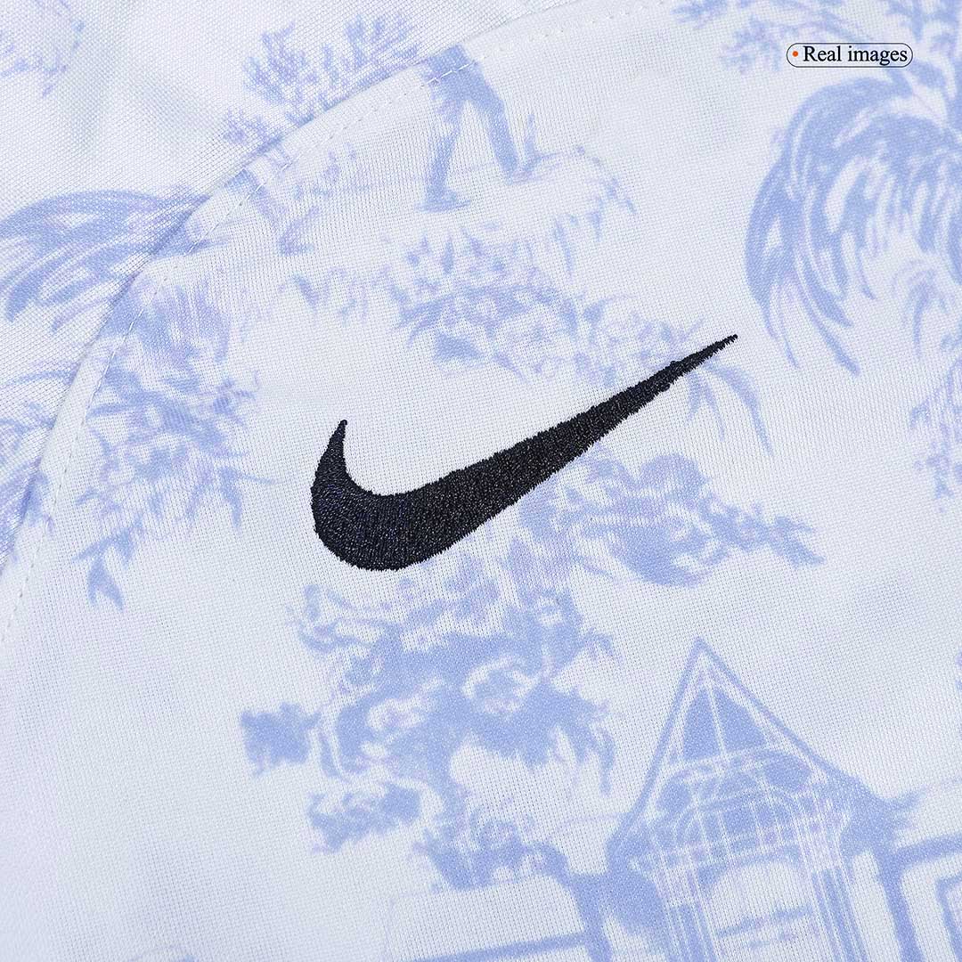 - Nike Logo: The Nike Swoosh appears in a contrasting colour, typically gold or blue depending on the specific kit element, adding a touch of premium detail.