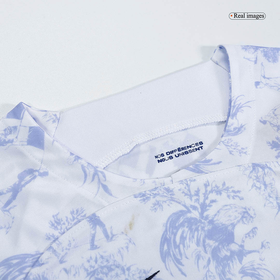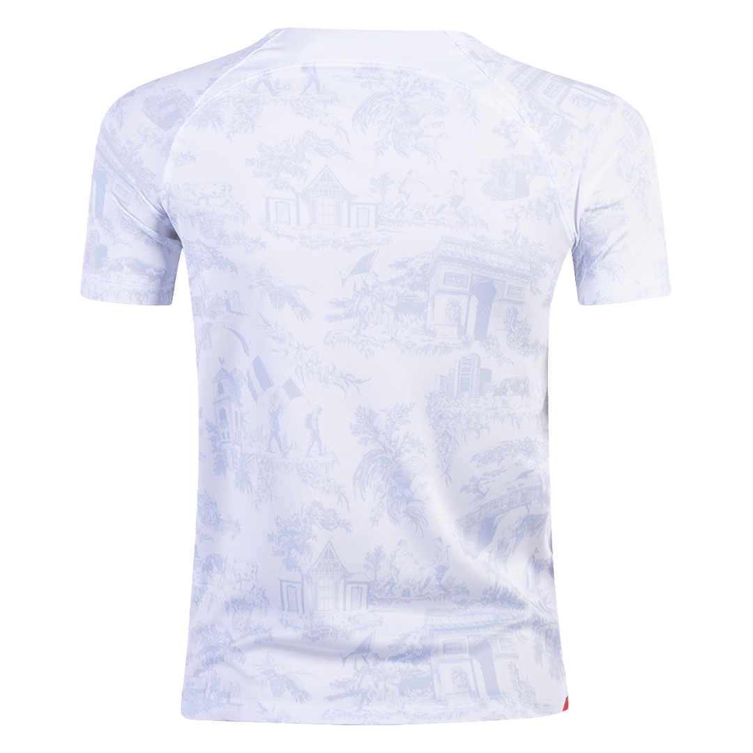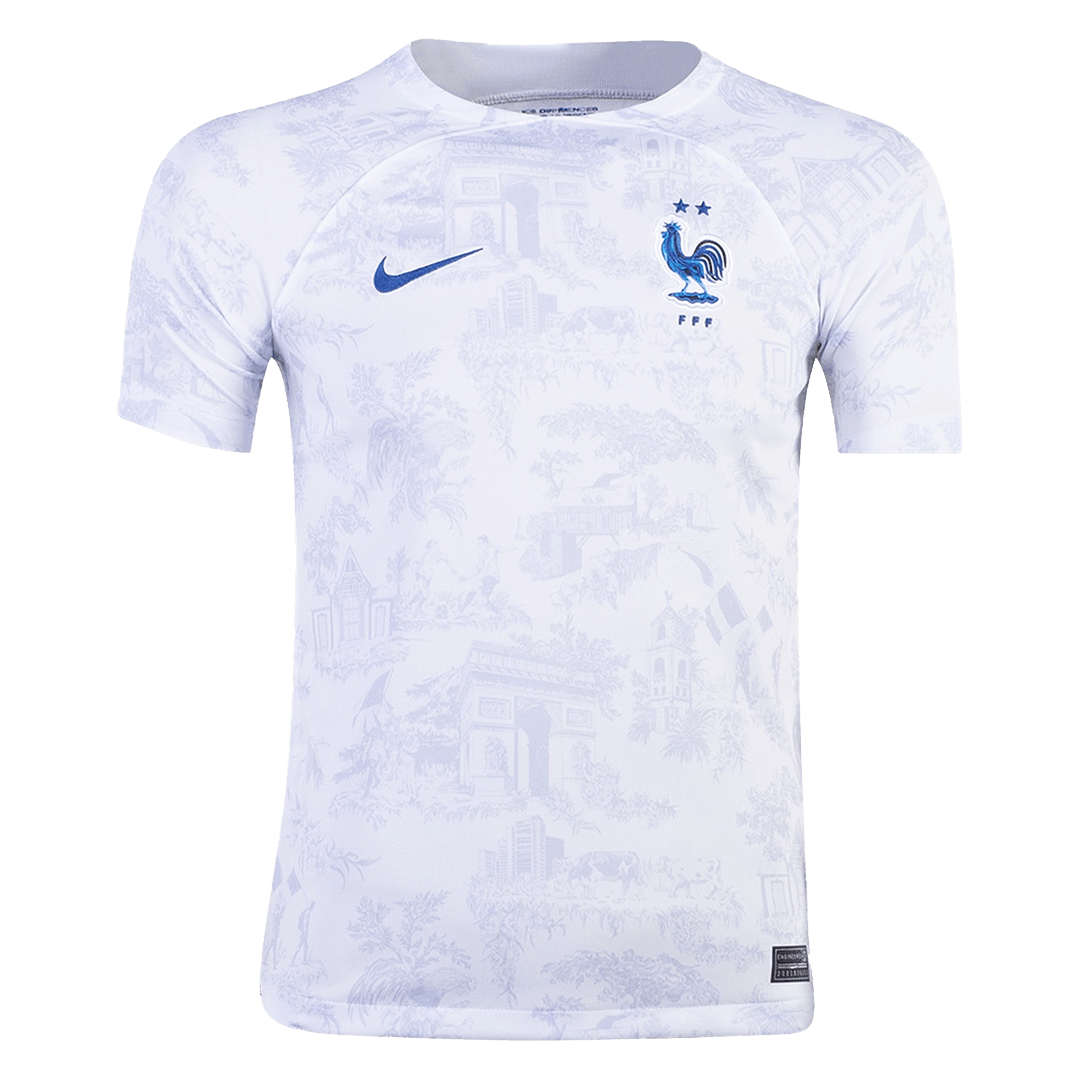 The 2022 France Away kit tells a story rooted in French heritage and national unity. While the home kit celebrated the classic French aesthetic, the away kit offered a fresh, symbolic interpretation. The primary colour is a clean, crisp white, providing a stark contrast to the dark home jersey and offering a bright, optimistic feel.