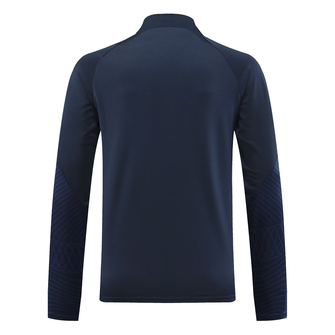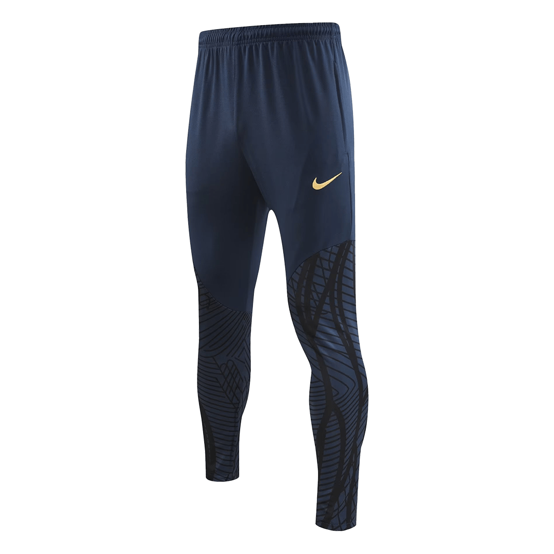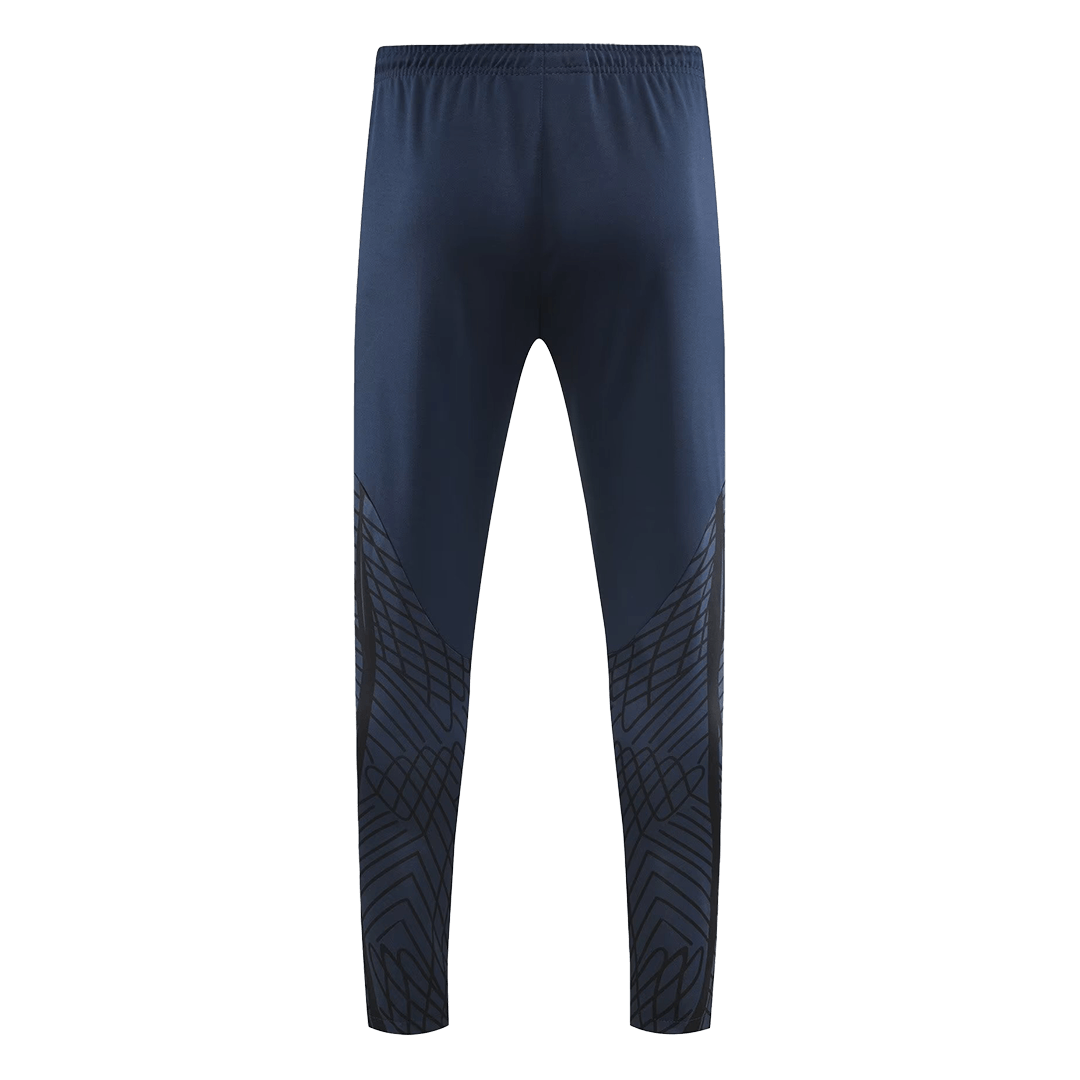 The 2022 Portugal training collection featured a sleek, modern aesthetic, primarily in a sophisticated Dark Obsidian (dark blue/black) with striking Rio Teal (greenish-blue) accents and subtle gold detailing. This tracksuit kit captures that look perfectly. The design is clean, professional, and instantly recognizable as part of the 2022 World Cup collection. The focus here is on providing fans with an authentic visual connection to the team’s training gear while prioritizing everyday comfort and durability.