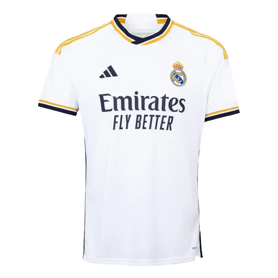 The Real Madrid CAMPEONES #36 Home Jersey 2023/24 is more than a shirt—it’s a symbol of dominance. This edition proudly features the exclusive “CAMPEONES 36” detailing, commemorating Real Madrid’s record 36th La Liga title. The classic white base, accented with subtle gold and navy trims, pays homage to the club’s regal heritage and relentless pursuit of excellence.