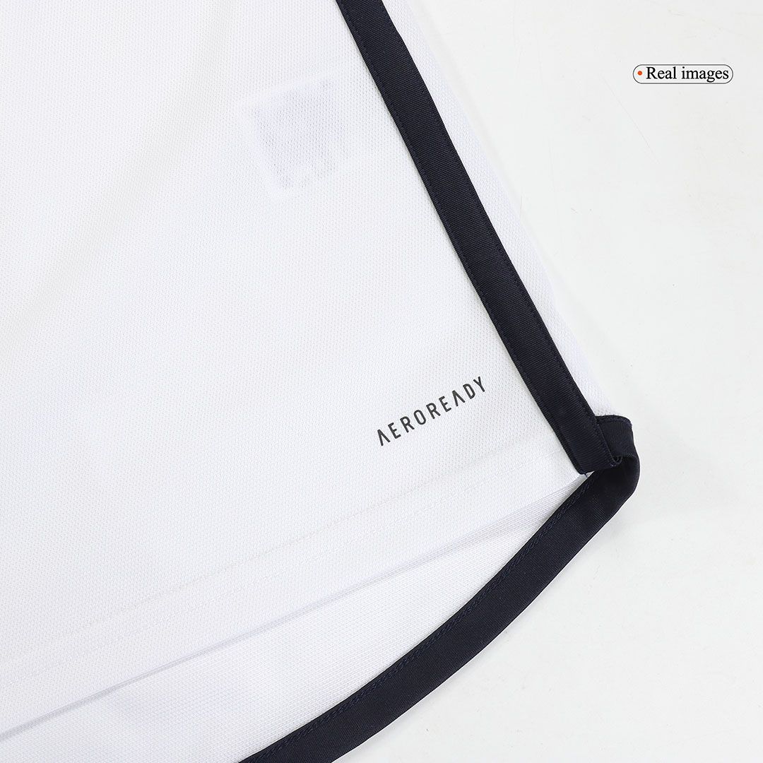 - Color Palette: The primary white is beautifully complemented by elegant gold accents. These gold details are featured on the Adidas logo, the club crest, and the sponsor’s mark, adding a touch of royalty befitting the ‘Kings of Europe’.
