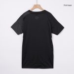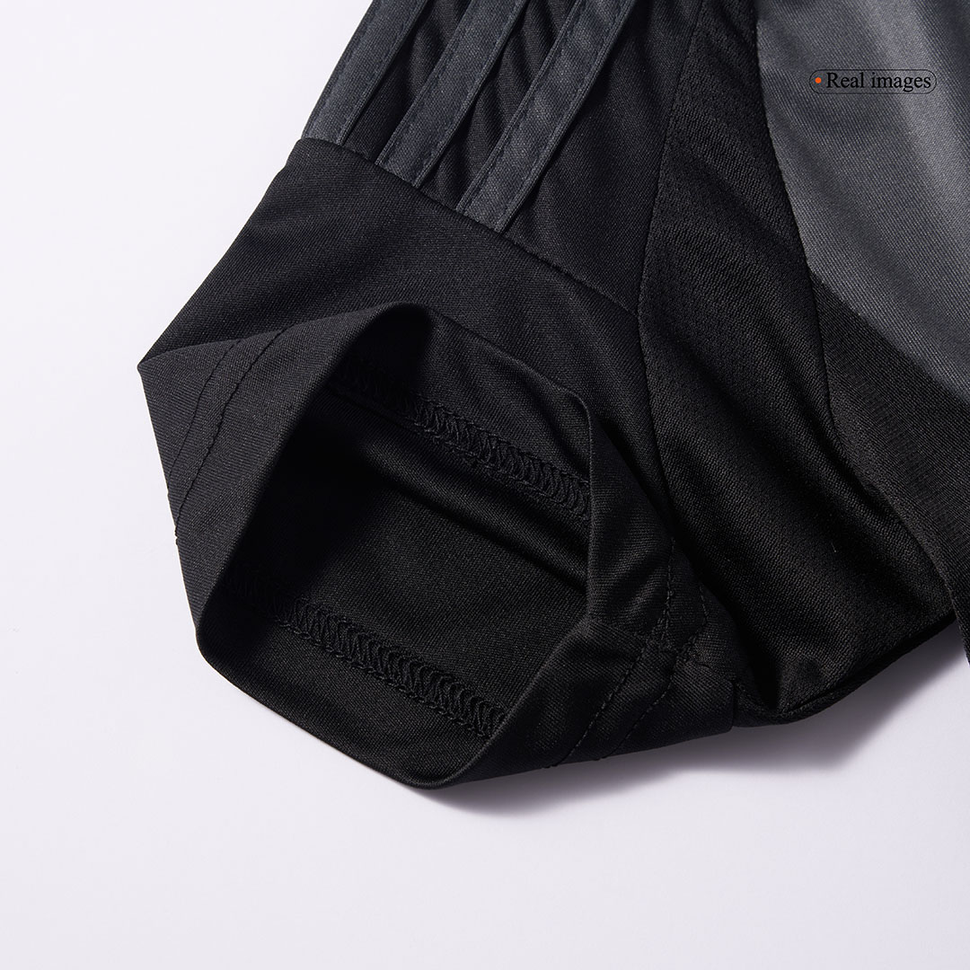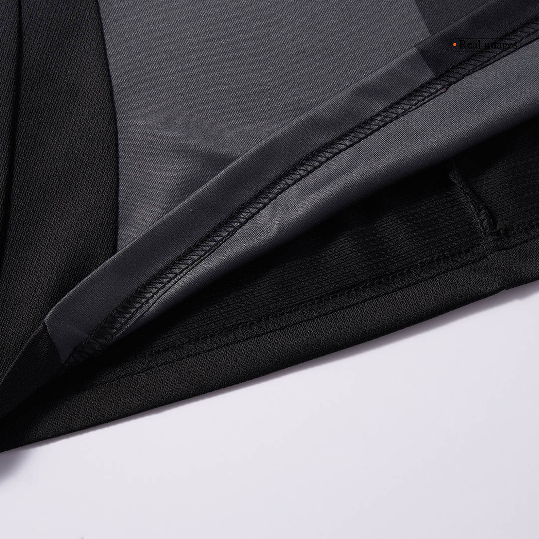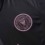 The jersey features a sophisticated half-and-half design in black and carbon, creating a sleek, modern aesthetic that exudes confidence and determination. Vibrant pink accents pop against the dark backdrop, maintaining the club’s signature color identity while offering a bold contrast that catches the eye both on and off the pitch.
